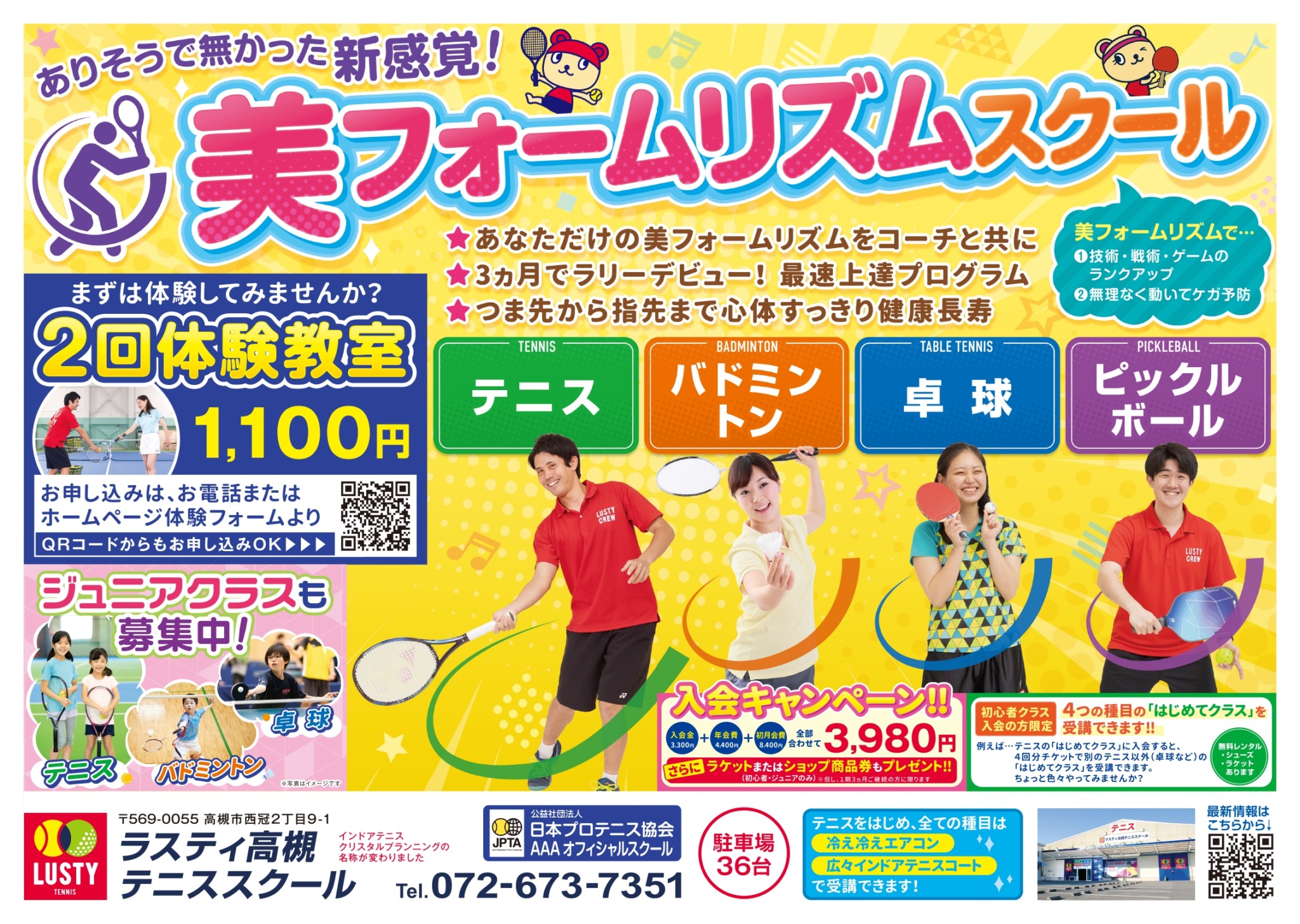 バドミントンスクール実施店舗:寝屋川・高槻・協同学苑