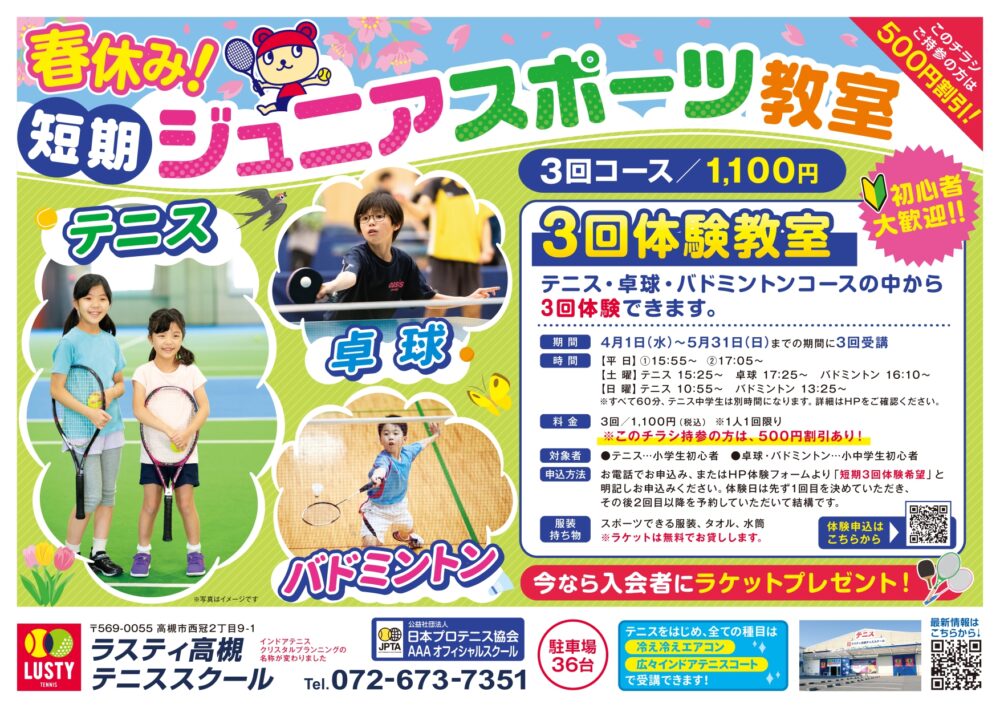 春休み!短期ジュニアスポーツ教室|ラスティ高槻